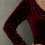 Întroduceți eleganța luminoasă în ținutele de seară cu Aubrey | Rochie Dreaptă cu Finisaj Strălucitor — o piesă elegantă din catifea care prinde lumina la fiecare mișcare. Cu o siluetă dreaptă, mâneci lungi și un guler drapat, radiază un glamour subtil de la cinele chic până la nopțile festive.