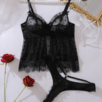 Setul Rosa™ combină un aspect rafinat cu un confort suprem. Mesh-ul transparent ornamentat cu detalii din dantelă delicată creează un look subtil și senzual, perfect pentru cele care doresc să se simtă feminine și încrezătoare. Datorită bretelelor ajustabile și croielii confortabile, acest set este ideal atât pentru serile relaxante acasă, cât și pentru momente intime.