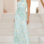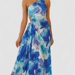 Fă senzație cu Sienna – rochie maxi elegantă cu decupaje. Această rochie florală albastră vibrantă combină feminitatea și rafinamentul, fiind perfectă pentru ocazii speciale sau evenimente elegante. Decolteul asimetric, fusta plisată și fluidă și detaliul decupat la talie adaugă un plus de eleganță și stil.