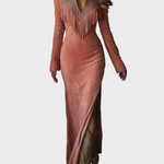 Această rochie lungă, inspirată din stilul western și boho, a fost creată pentru femeile care doresc să se remarce.