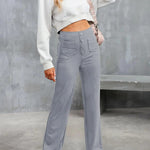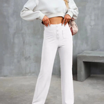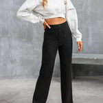 • Design: Pantaloni cu talie înaltă și picioare largi, cu buzunare elegante în față